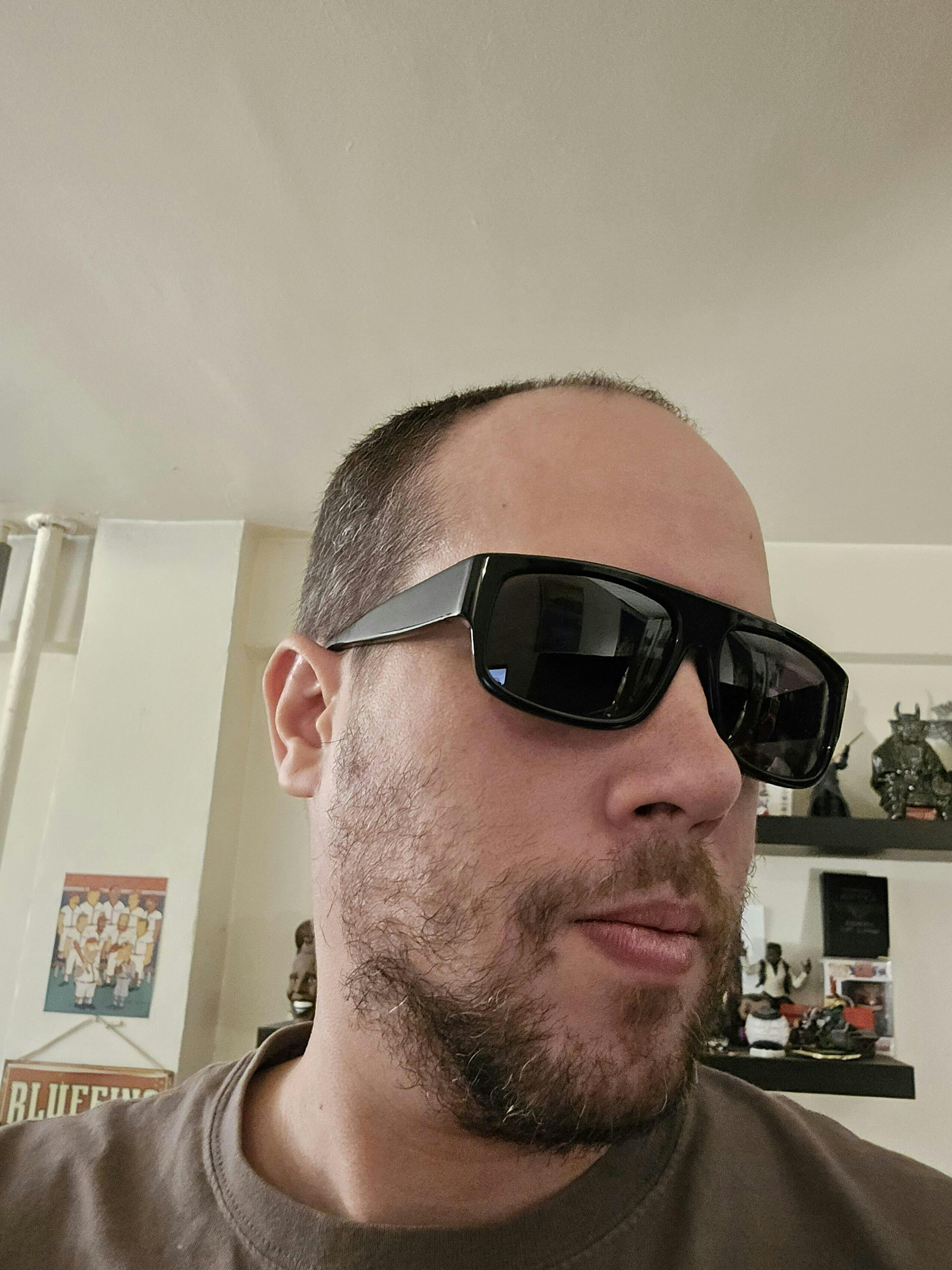 I wanted a new pair of Mad Doggers, for my big head and bad vision, the originals are too dark for me to see and a little small, I didn't wanna look like i was wearing "my sons glasses at night." So, I decided to make my own. They are a little bigger, polarized and easier to see through. I wanted to keep them as close the price they were at the gas station in the 90s. We made em in Pearl, Clear Blue, Tortoise and Black.