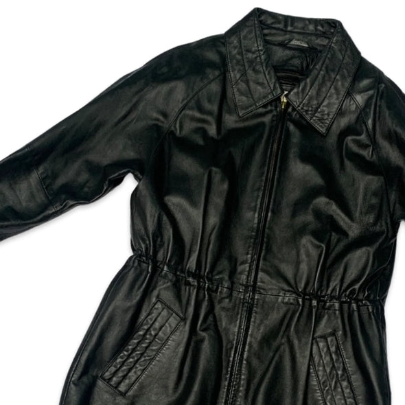 Vintage 90s Black Vegan Leather Fur Coat